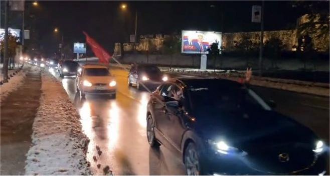 Присталице СНСД-а су синоћ улицама Бањалуке славиле побједу свог кандидата Синише Карана на пријевременим предсједничким изборима у Републици Српској.