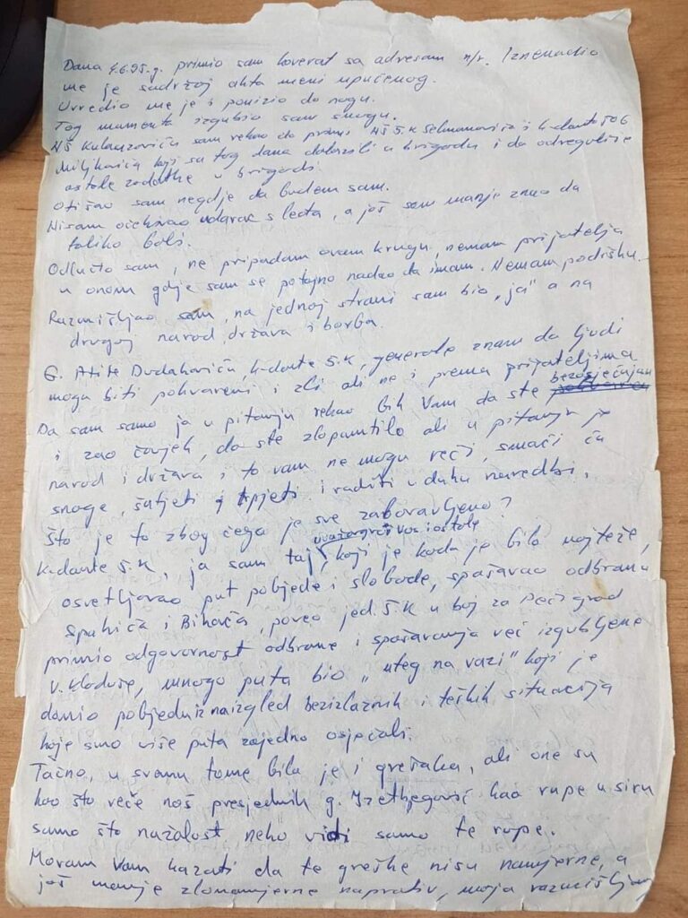 Господине Атифе Дудаковићу, к-данте 5. корпуса, генерале знам да људи могу бити покварени и зли али не и према пријатељима.