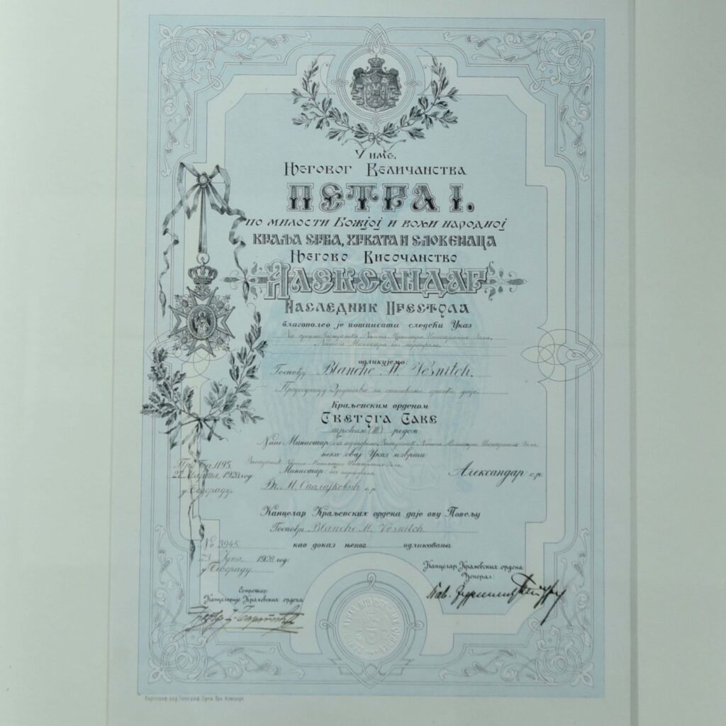 Ту су и писани документи којима руски цар, папа Бенедикт, српски краљеви, одликују значајне историјске личности деветнаестог и прве половине двадесетог вијека.