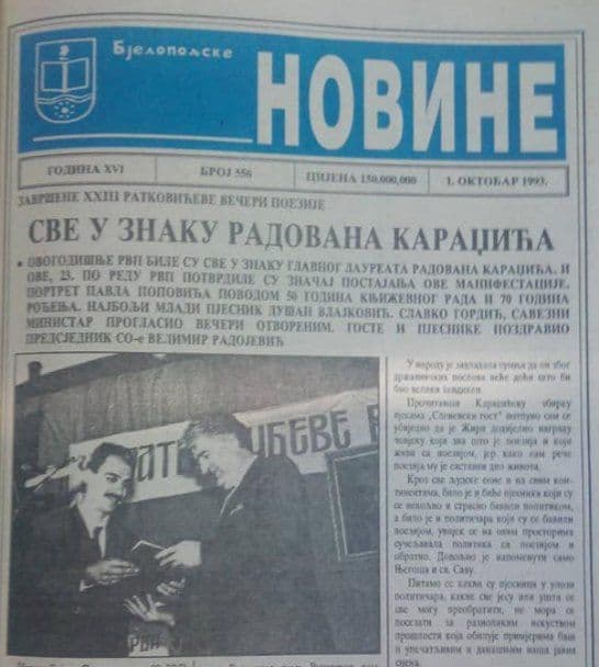 Радовану Караџићу одузета књижевна награда из 1993. године у Бијелом Пољу