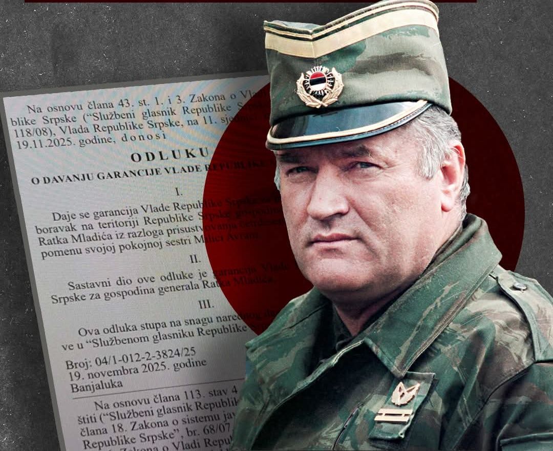 Како је објављено у Службеном гласнику Републике Српске, Влада Републике Српске дала је гаранцију за привремени боравак генерала Младића због, како су навели, четрдесетодневног помена његове преминуле сестре Милице Аврам.