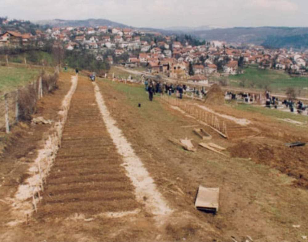 Na fотографиј je prikazano oткопавање масовних гробница у Мркоњић Граду након повратка ове општине у састав Републике Српске.