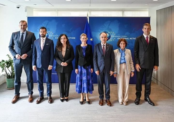 Министар спољних послова Србије Марко Ђурић са „прошверцованом“ Вјосом Османи на заједничкој фотографији са „традиционалног састанка“, који је одржала висока представница Европске уније Каја Калас у Уједињеним нацијама. Каласова је иначе из Естоније, а колико видимо не смета јој друштво нарушитеља уставних поредака у овом случају. Не смета ни српском представнику очигледно …
