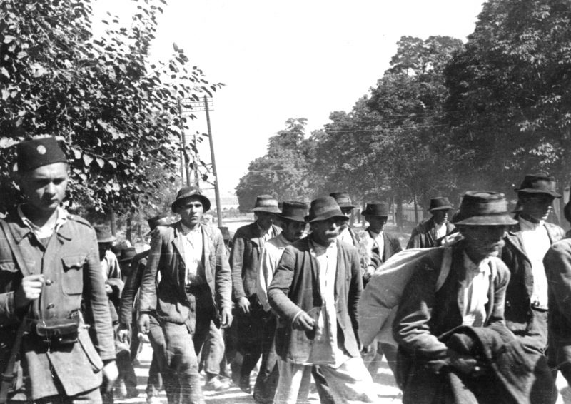 Сакупљање убијених Срба у Приједору током Илинданског покоља 1941. (Извор: Ведрана Адамовић, Године страдања 1941/42, Приједор, 2018.)