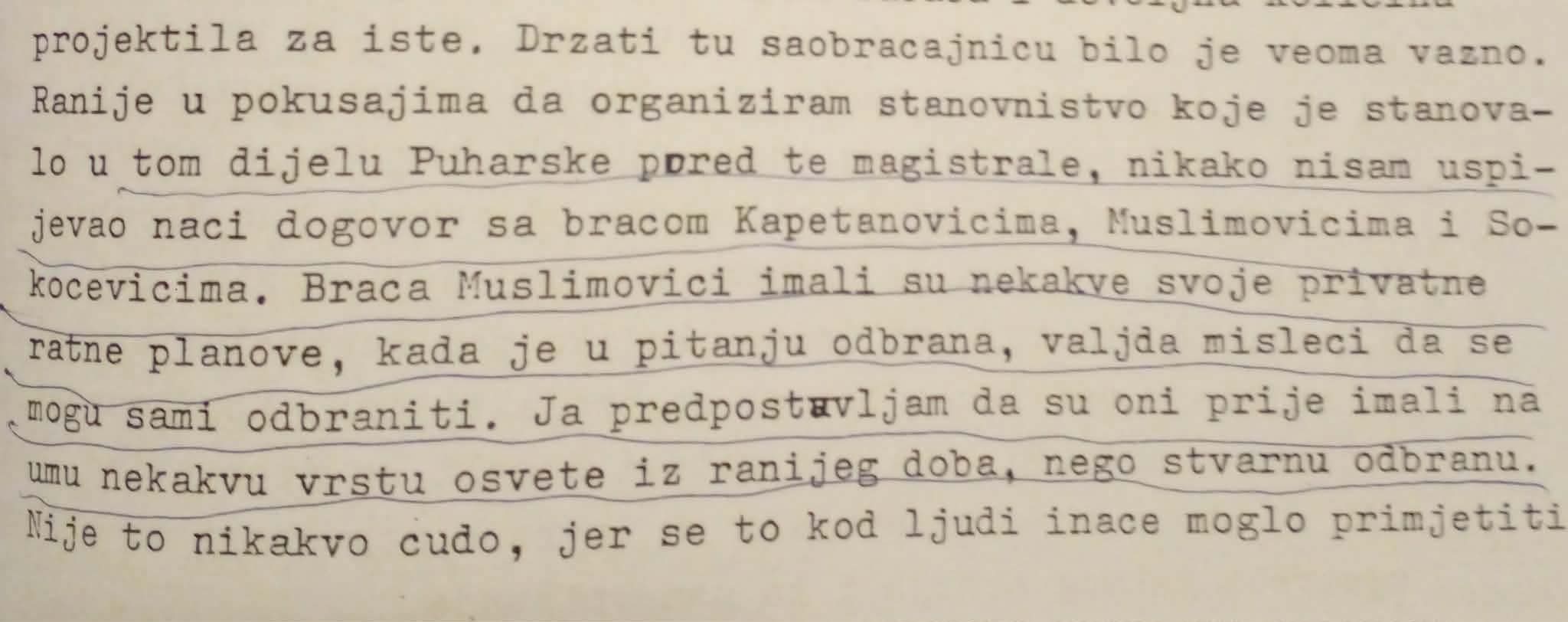 Ту наводи много имена муслиманских представника који су били укључени у ратне припреме, а међу осталима наводи и браћу Муслимовић чија се кућа налази поред магистралног пута Приједор-Нови Град. Испод имате један исјечак из Рамићевог извјештаја.