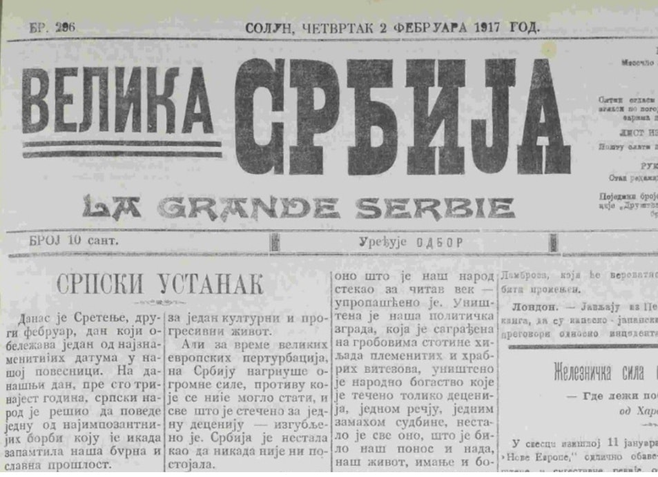 „Данас је Сретење, други фебруар, дан који обележава један од најзнаменитијих датума у нашој повесници. На данашњи дан, пре стотринајест година, српски народ је решио да поведе једну од најимпозантнијих борби коју је икада запамтила наша бурна и славна прошлост.