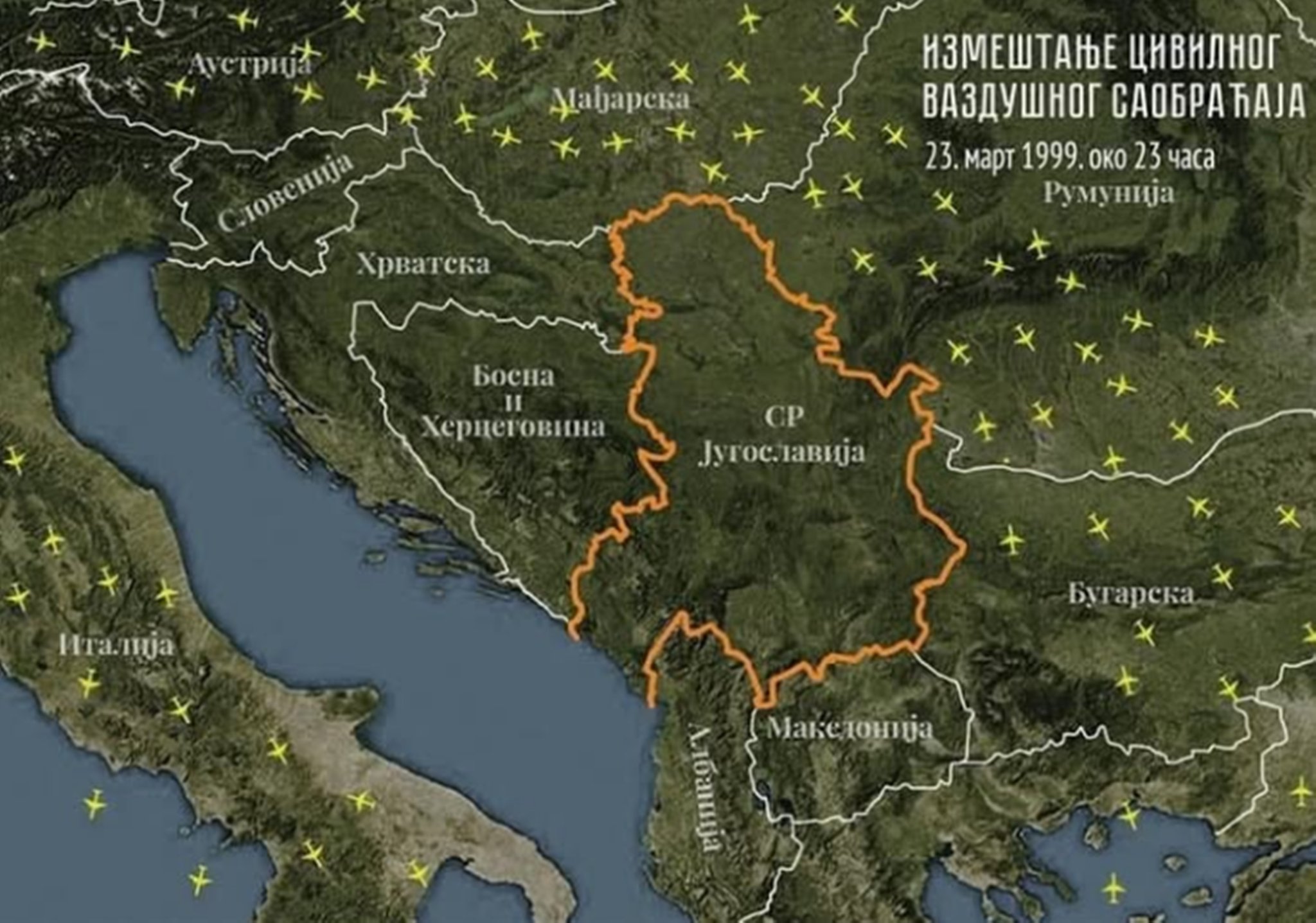 Тачно у 23 часова 23 марта 1999. године. Сви путнички авиони заобишли су СР Југославију!
