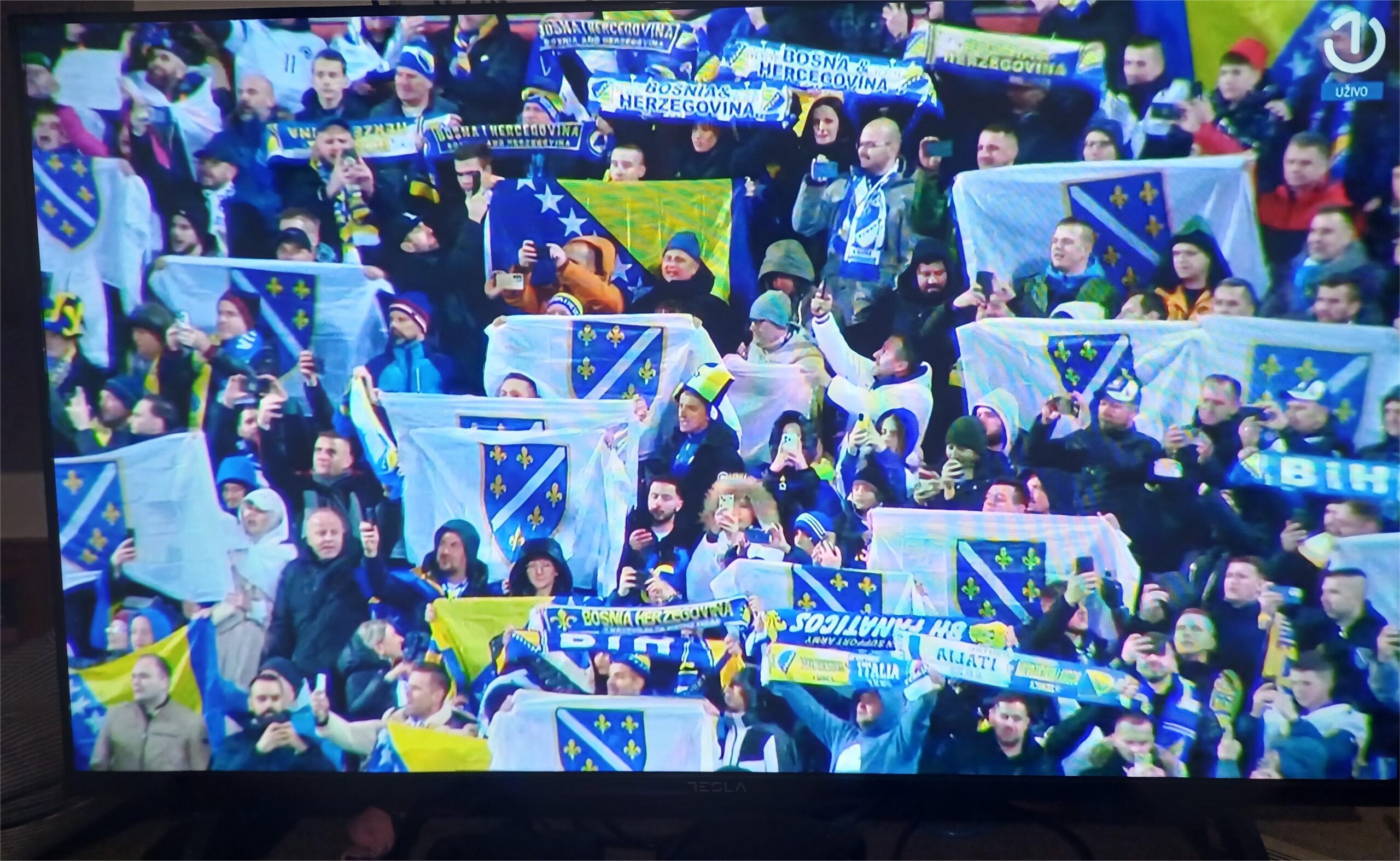 Цијели стадион, „Билино поље“ у Зеници пјевао је вечерас химну Босне и Херцеговине пред финални меч баража за пласман на Свјетско првенство ове године у САД, Мексику и Канади против Италије.