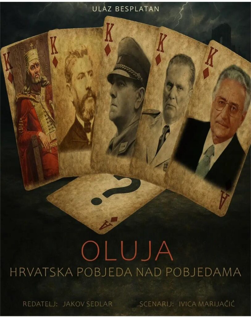 У римокатоличкој дворани „Дон Петар Шимић“ у Загребу одржава се промоција филма „Олуја – побједа над побједама“, чији је аутор Јаков Седлар. Ради се о филму који велича етничко чишћење и страдање српског народа, представљајући као „епску побједу“ оно што је у суштини био један од највећих злочина на простору бивше Југославије.