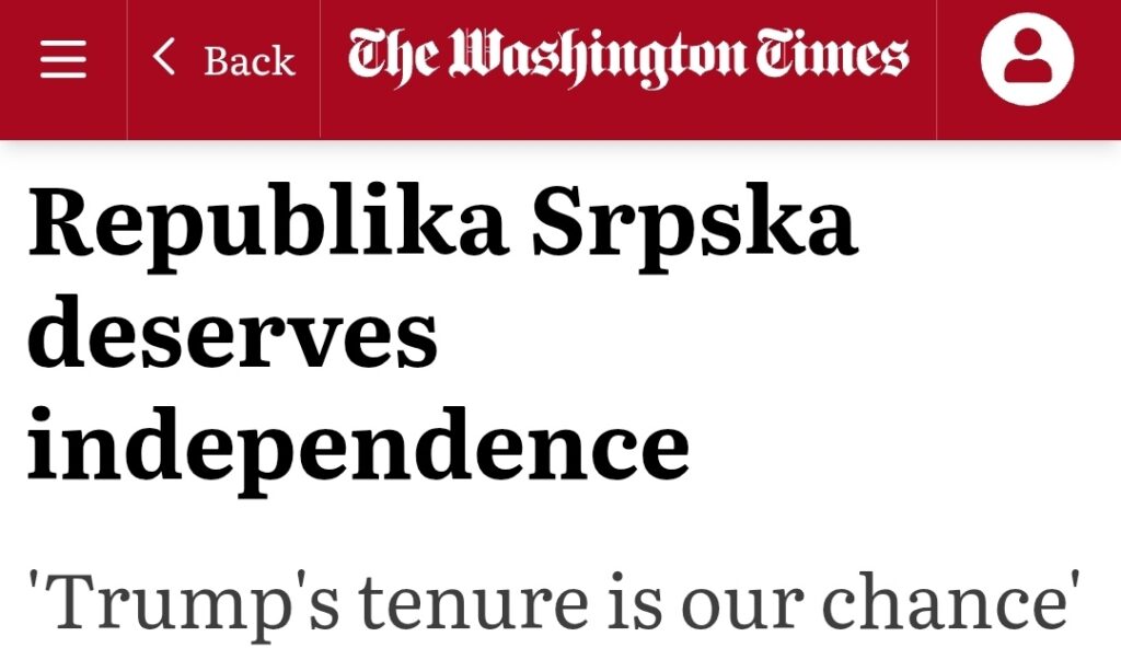 Вашингтон тајмс написао: „Република Српска заслужује независност“